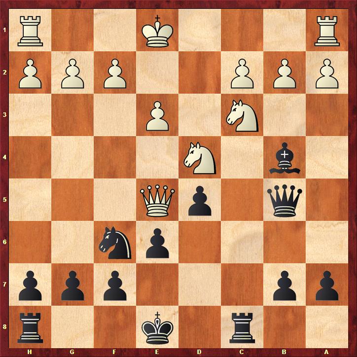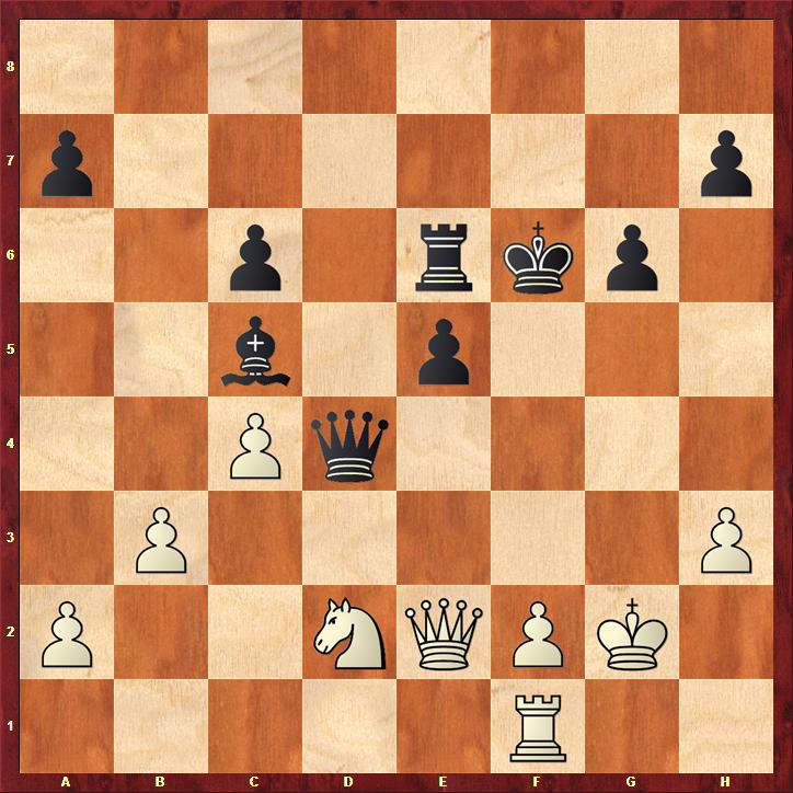 Es entsteht in der Folge eine sehr komplizierte Stellung in der Buddi‘s Dame auf a6 „eingeklemmt“ wird, im Gegenzug macht ein Weißer Turm auf b5 aber auch keinen glücklichen Eindruck. Jürgen hätte die Chance gehabt durch ein Fesselungsmotiv vermutlich in Vorteil zu kommen, aber kein Vorwurf, die Stellung war sehr kompliziert und voller taktischer Motive.