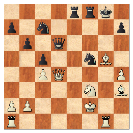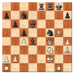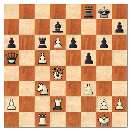 (Übersieht in klar gewonnener Stellung, dass nach Tf8-c8 der Zug Td2-c2 mit dem überraschenden De1# beantwortet wird…Se2 hätte leicht gewonnen..)