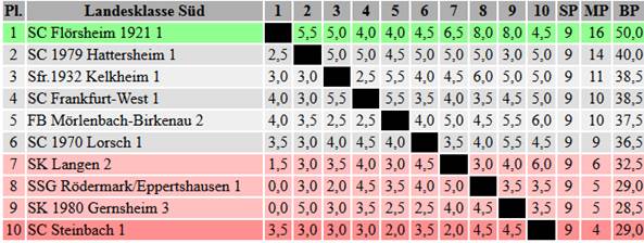 Die 2. Mannschaft machte mit einem Sieg 4,5:3,5 über Rüsselsheim 1