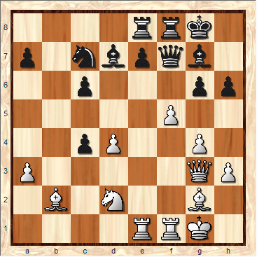 Mittelspiels gegen das Läuferpaar kämpft. Beide Seiten spielen