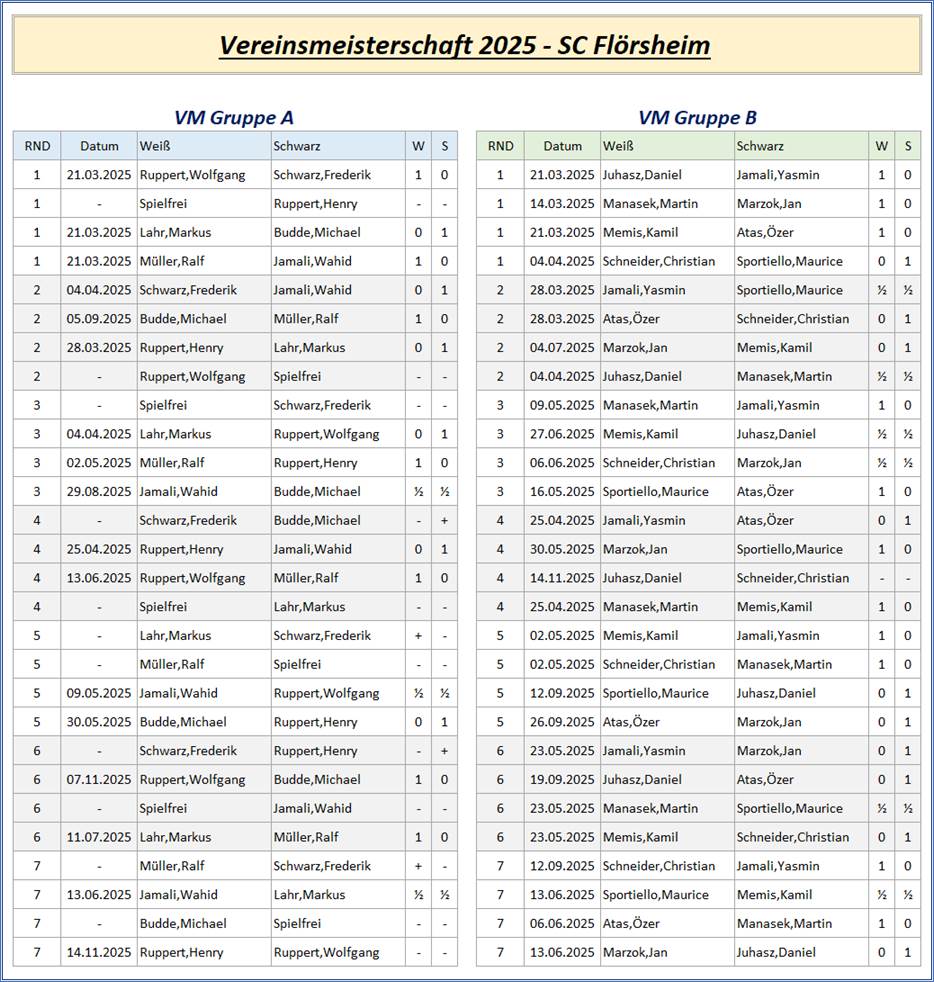In Übereinstimmung mit Turnierleitung und Vorstand wurde die VM 2025 mit Turnierende 14.11.2025 abgeschlossen !
